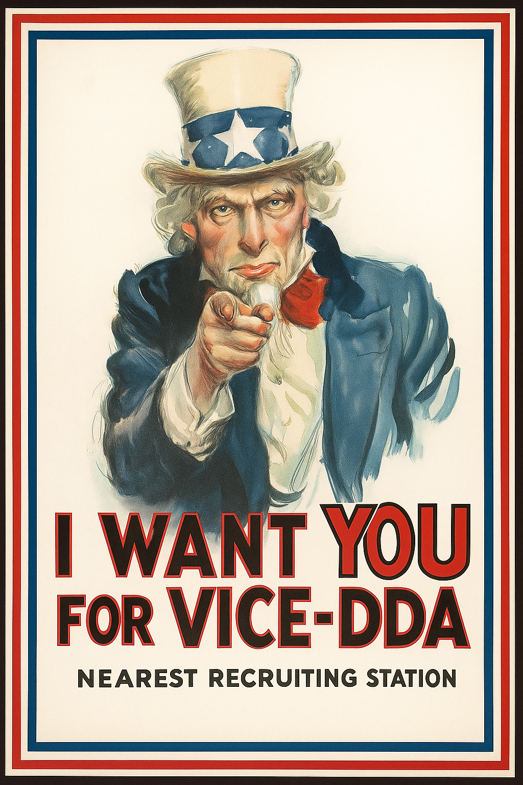 Vice-DDA är en nyckelroll inom D-Dagen och fungerar som projektledarens (DDA:s) högra hand. Genom ett nära samarbete med DDA stöttar Vice-DDA det övergripande arbetet i projektet och säkerställer att alla grupper rör sig i rätt riktning. Rollen kräver ett helhetsperspektiv, god kommunikationsförmåga och en stark känsla för ansvar. Vice-DDA bidrar till att D-Dagen blir en sammanhängande, effektiv och minnesvärd upplevelse för både studenter och företag.